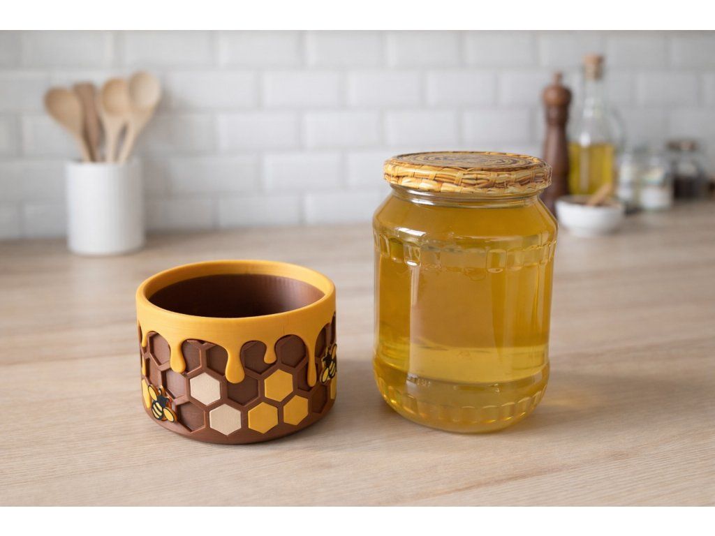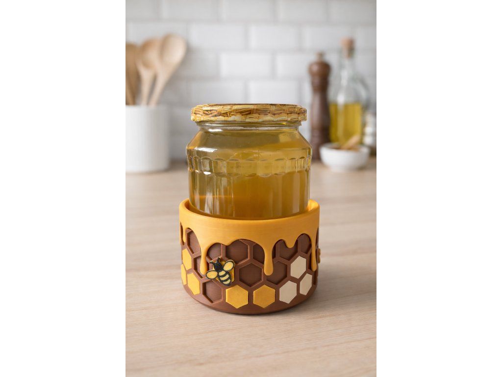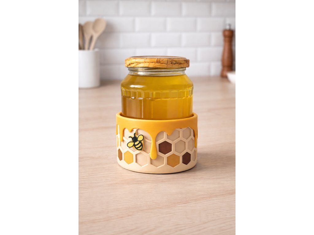 Znáte to. Vytočíte trochu medu, sklenici postavíte zpět – a za chvíli je pod ní malá kaluž. Med steče po skle dolů, přilepí se k lince a každé ráno musíte utírat. Talířek pomůže, ale nevypadá dobře. Ubrousek se přilepí. Improvizovaná řešení jsou improvizovaná.