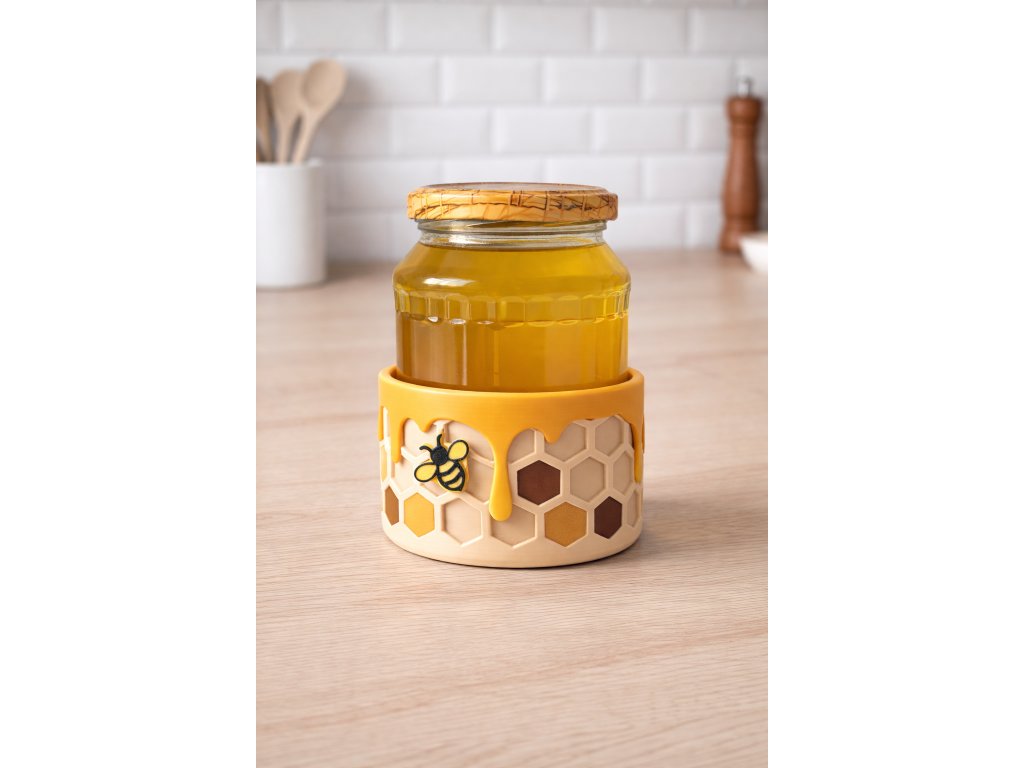 Jedná se o praktickou podložku pod sklenici s medem, která zachytí stékající med a zabrání znečištění povrchu. Oproti improvizovaným řešením, jako je talířek či ubrousek, působí čistě a upraveně – a zároveň plní svou funkci přesně tak, jak má.
